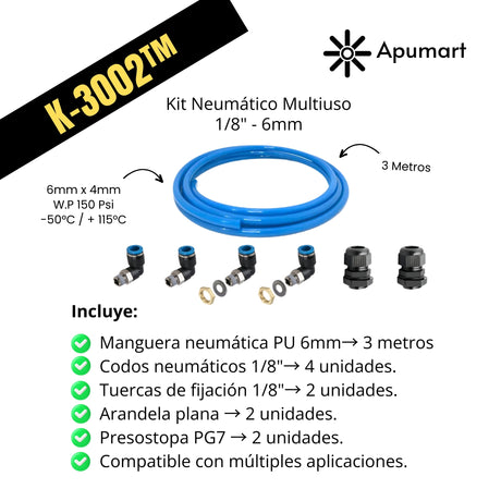 K-3003™ – Kit Neumático Multiuso 1/8" con Manguera PU 6mm